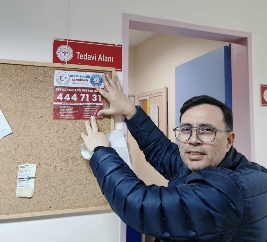 Yapılan açıklamada, “Hekim Birliği, Sağlık ve Sosyal Hizmetler Çalışanları Sendikası olarak sağlık çalışanlarımızın güvenliği ve haklarının korunması adına Beyaz Kod Acil Destek Hattını hizmete açmış bulunmaktayız.  444 71 31 Bu numaranın aranması halinde;  7 gün 24 saat kesintisiz ve ÜCRETSİZ avukat desteği sağlanacaktır.  Şiddet, tehdit, hakaret ve görev sırasında karşılaşılan tüm hukuki durumlarda anında destek alabilirsiniz.  Tüm sağlık kurumlarında gerekli bilgilendirme yapılmış, duyuru ve afişler ilgili alanlara asılmıştır.  Hekim yalnız değildir! Hekim Birliği her zaman yanında!” sözlerine yer verildi. (BSHA – Bilim ve Sağlık Haber Ajansı)