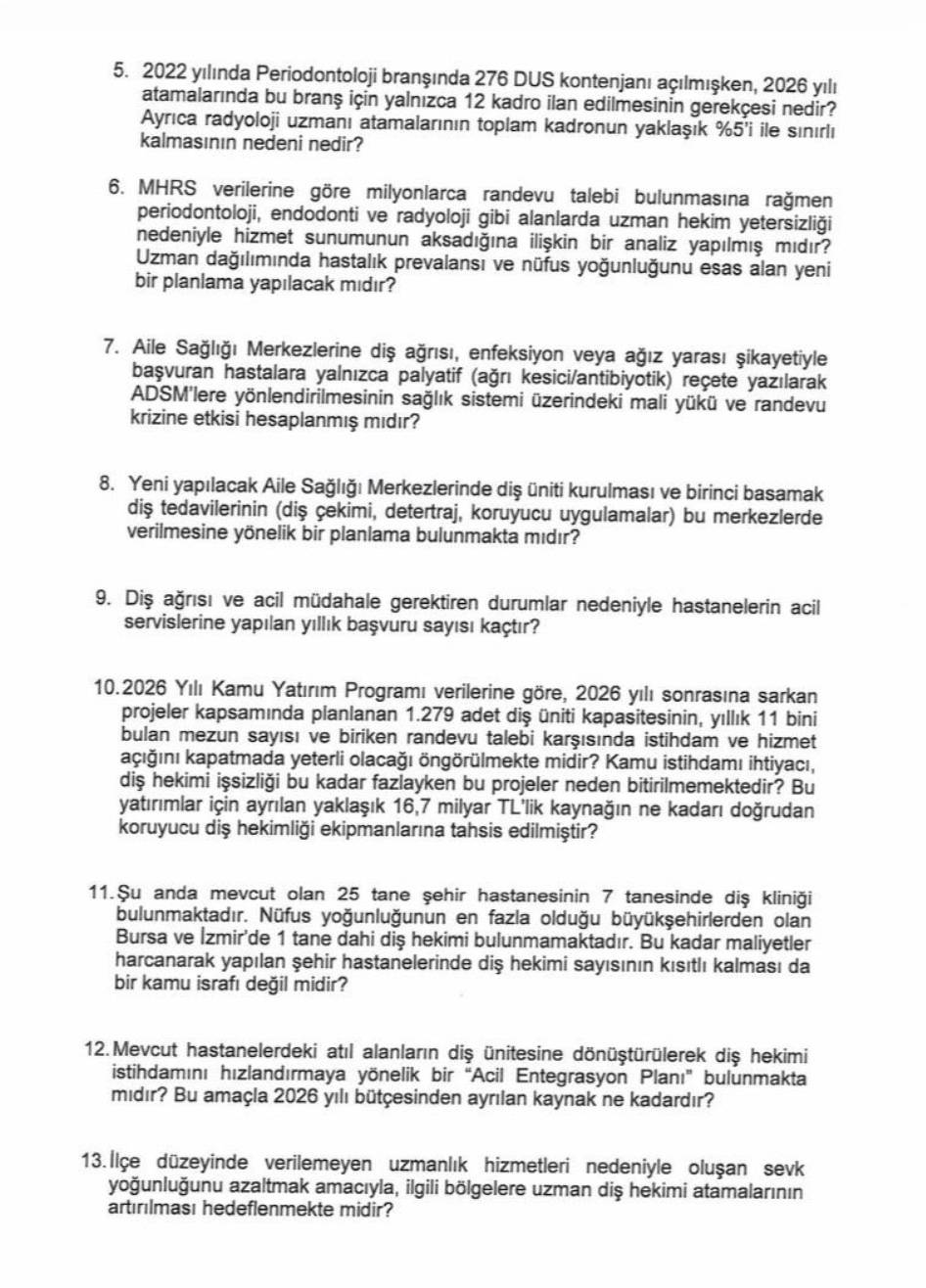 5. Selçuk Özdağ, Diş Hekimlerinin Atama Krizi Hakkında Önerge Verdi